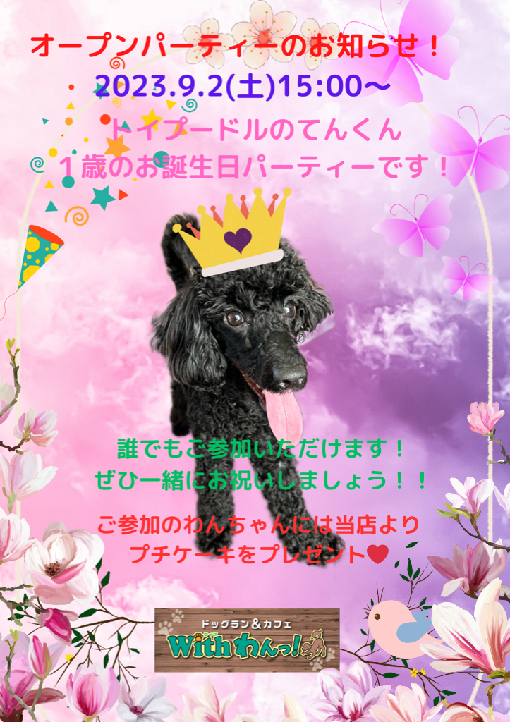 そして!パーティーご参加のわんちゃんは、ドッグラン相ラン使用料無料!!一緒に遊びましょう!