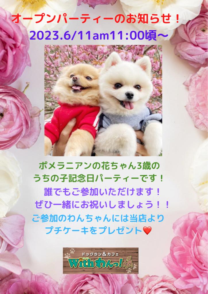 本日、PM11:00頃より、ポメラニアンの花ちゃん3歳のお誕生日パーティーを開催いたします!
