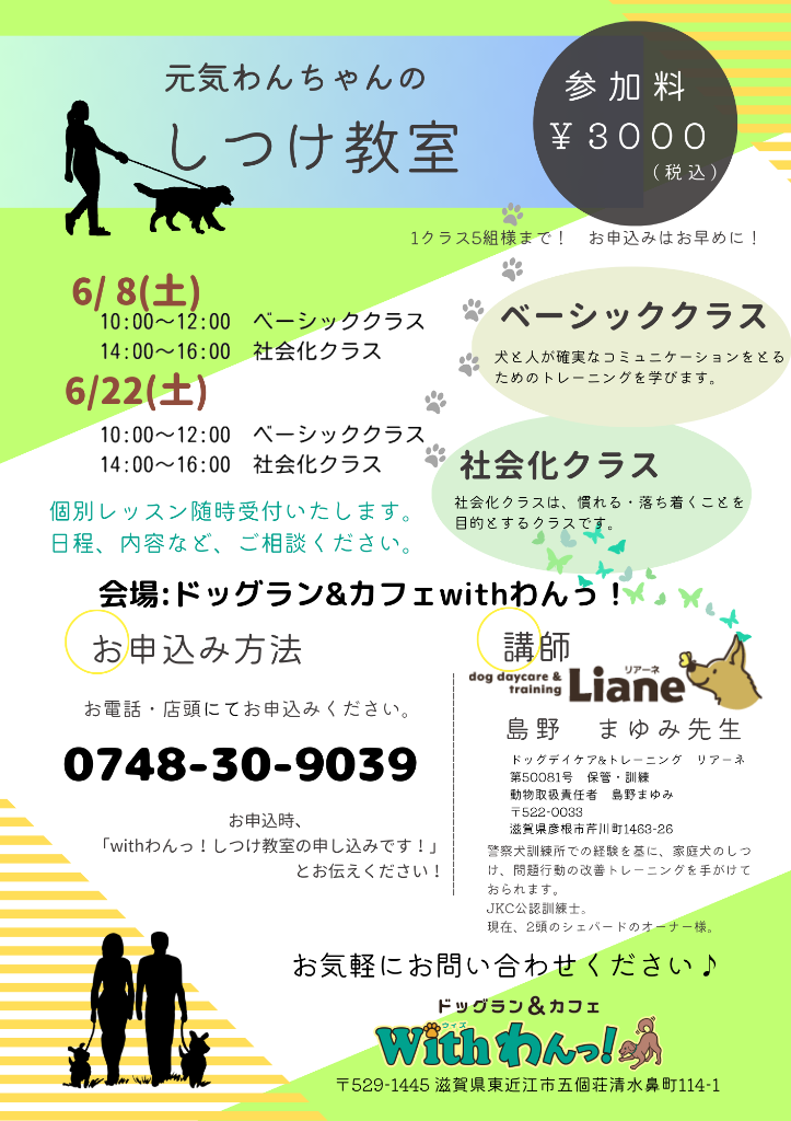 日々の生活を楽しむために、お出かけを楽しむために、しつけ教室を受講してください!