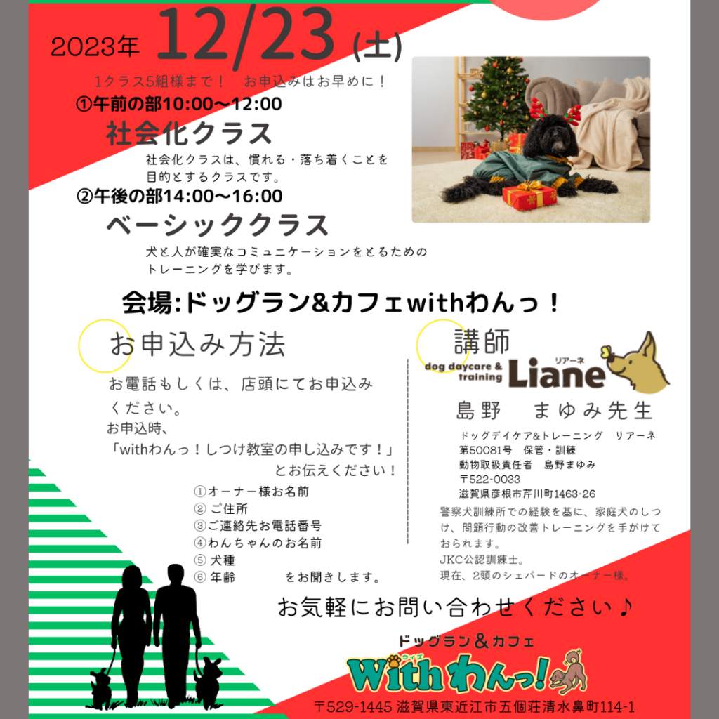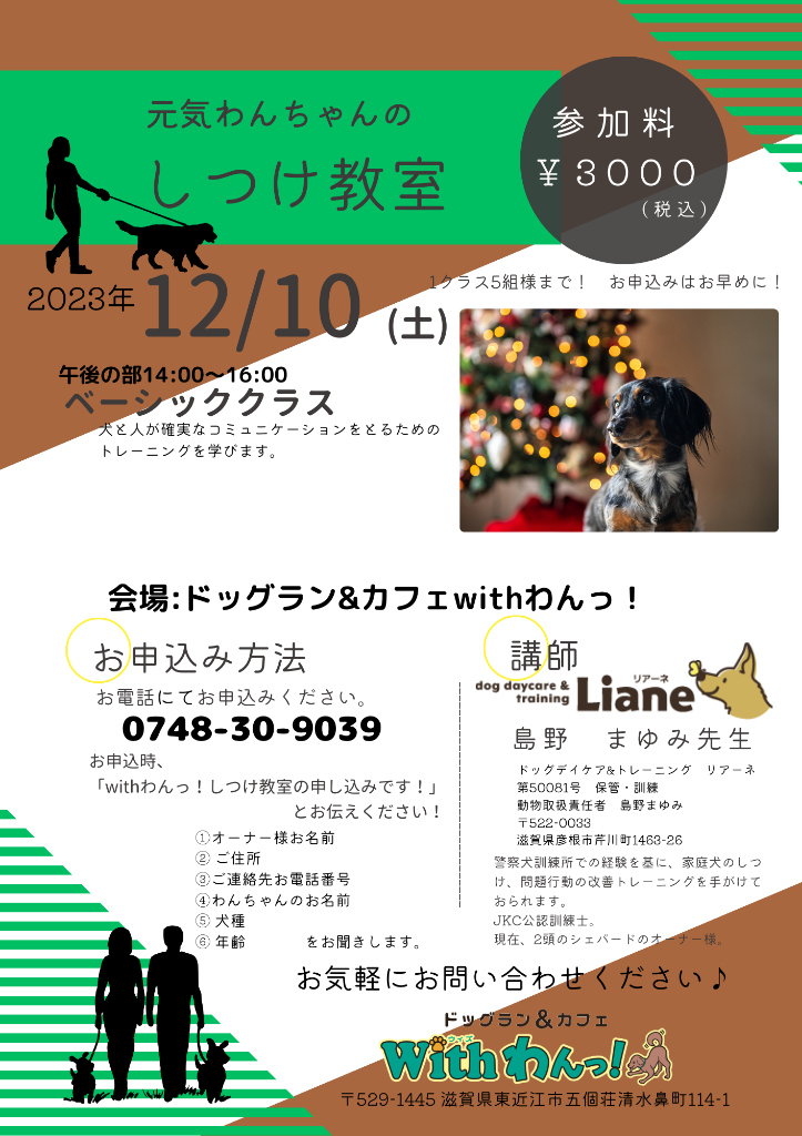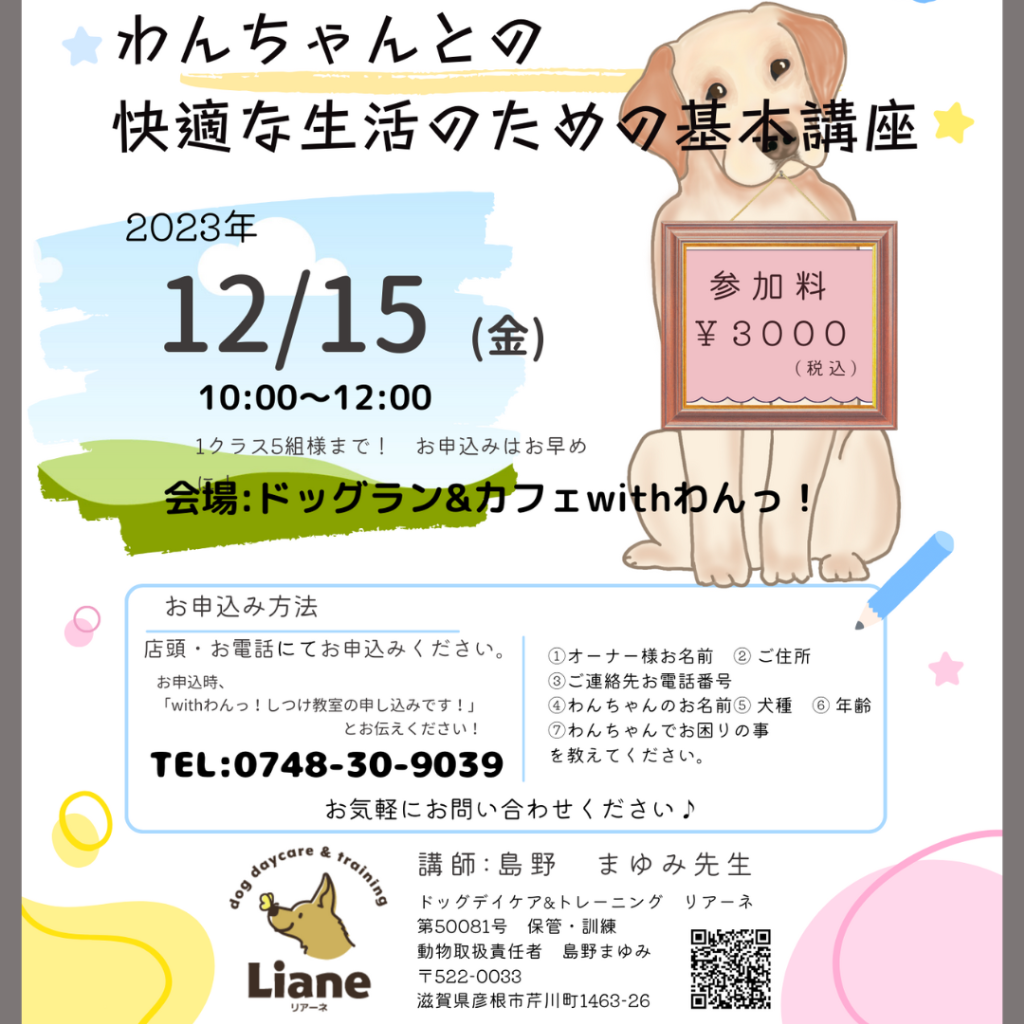 わんちゃんとの関係がますます良くなるように、受講してみませんか?