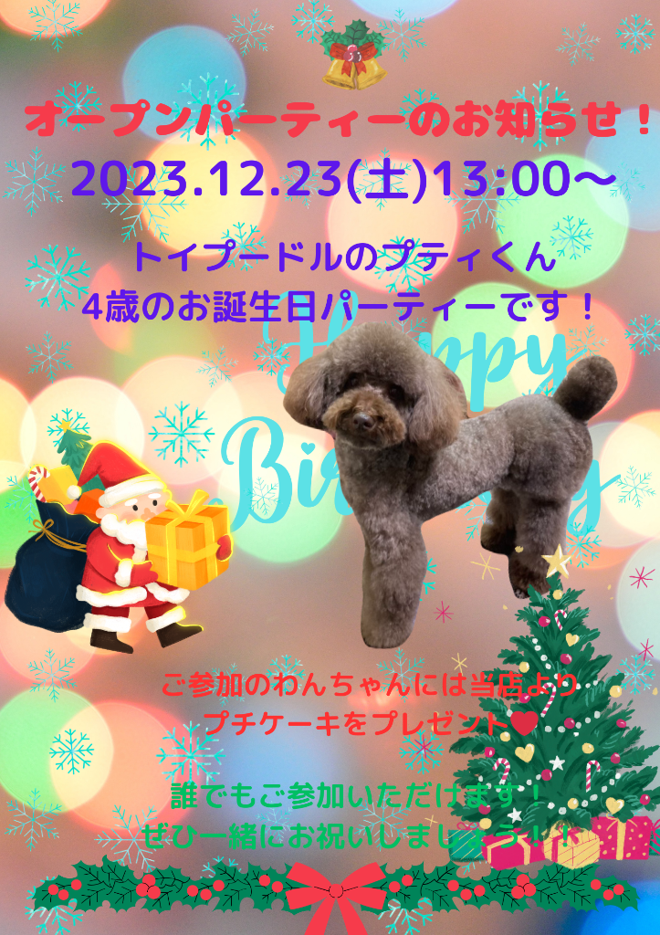 トイプードルのプティくん4歳のお誕生日パーティーを開催いたします!
